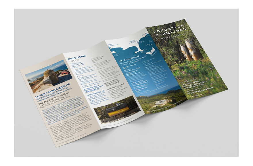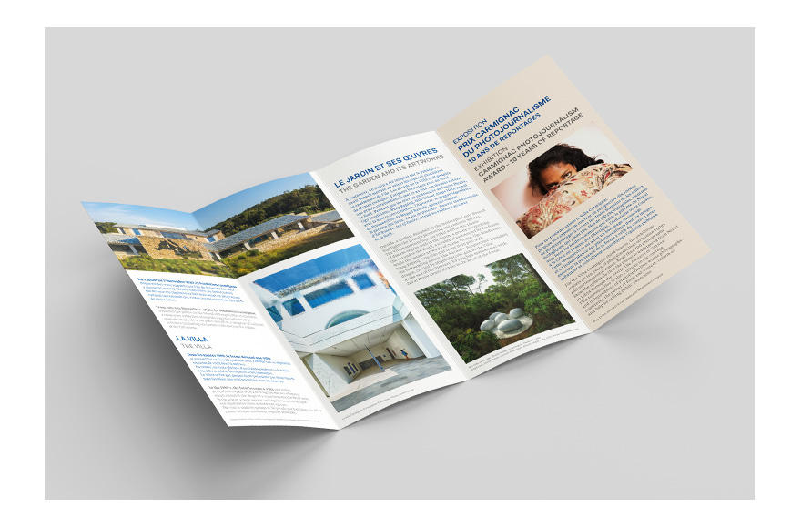 Graphic design and production for the Villa Carmignac's visual communication: visitor's booklet, press kit, invitation…Request quote, photoengraving and makeready.