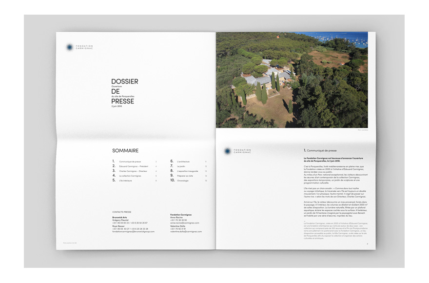 Graphic design and production for the Villa Carmignac's visual communication: visitor's booklet, press kit, invitation…Request quote, photoengraving and makeready.
